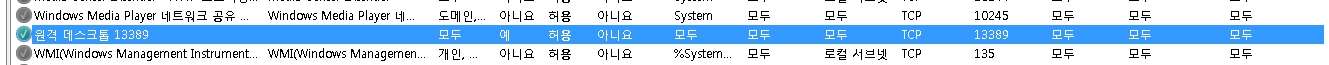 6) 감염 PC 윈도우 방화벽 점검 : 외부 "원격 데스크톱" ANY OPEN 상태