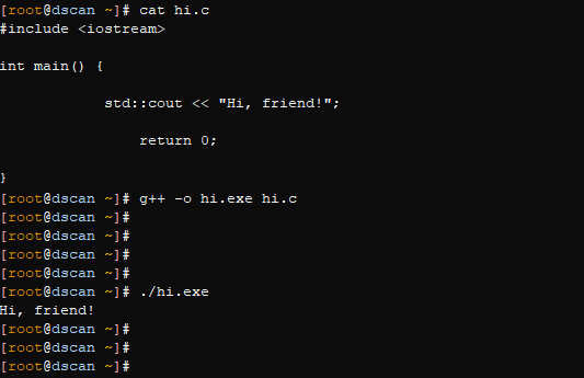 std::cout << "Hi, friend!";