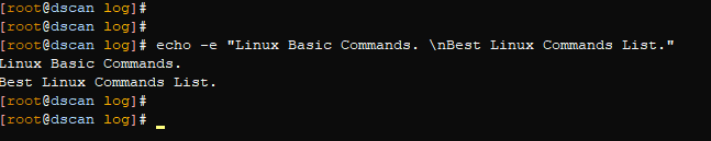 $ echo -e "Linux Basic Commands. \nBest Linux Commands List."