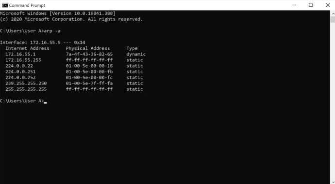 대부분의 Windows, Mac 및 Linux 시스템에서 터미널 또는 명령줄에서 "arp -a" 명령을 실행하면 컴퓨터의 현재 IP-MAC 주소 매핑이 표시됩니다.