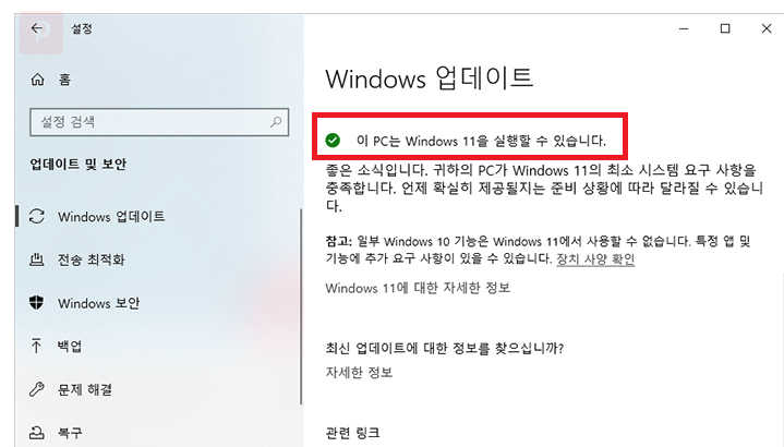 아래 내용을 통하여 본인의 PC에 Windows 11 설치 가능한지 하드웨어를 미리 확인 하시기 바랍니다.