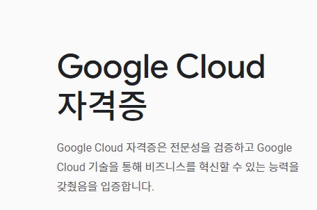 Google Cloud 플랫폼을 운영하기 위한 전문성 및 전문기술을 검증 및 입증하기 위한 자격증 시험 및 자격증 인증제도를 운영하고 있습니다.