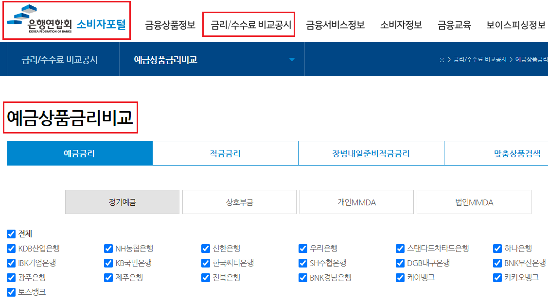 첫 번째, 정기예금 금리비교 방법 (은행연합회 비교공시)
