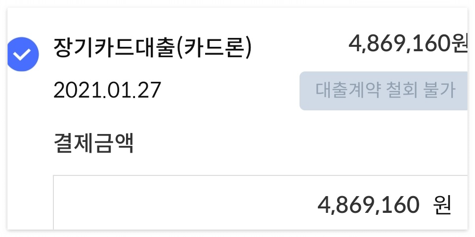 결과적으로 장기 카드론(15%대) 2군데, X저축은행(16~18%) 두 군데 총 4곳의 대출을 신규 대출을 받아 채무 통합하고 대환대출 조건으로 심사결과 승인되어 갈아타는 데 성공하였습니다.