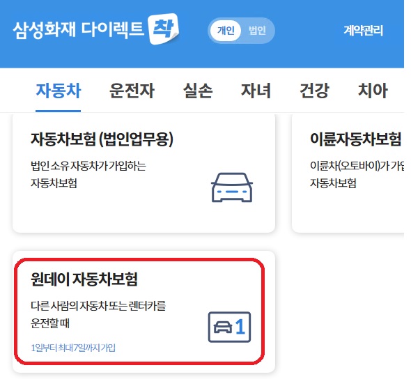 보험사별 원데이(일일) 자동차보험 가입 방법
