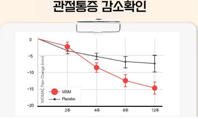 MSM 성분 부작용 : MSM 성분을 과다 섭취할 경우 위장 장애에 따른 설사, 복통 등의 부작용이 나타날 수 있습니다.