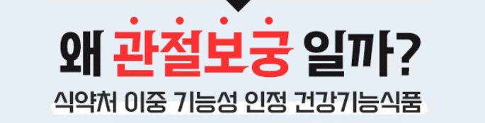 대표적인 홍보 문구는 관절염 걱정된다면? 하루 2번 간편 섭취로 건강을 챙겨라. 반복되는 무릎 허리 관절 통증 방치하면 큰일! 관절보궁으로 간편하게 관리 하세요! 입소문으로 관절 건강이 좋지 않은 분들께서 많이들 찾고 있는 건강 기능 식품입니다.