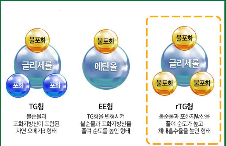 rTG 오메가-3 보충제는 신체에 의해 더 쉽게 흡수되고 더 높은 생물학적 가용성을 갖는다고 합니다.