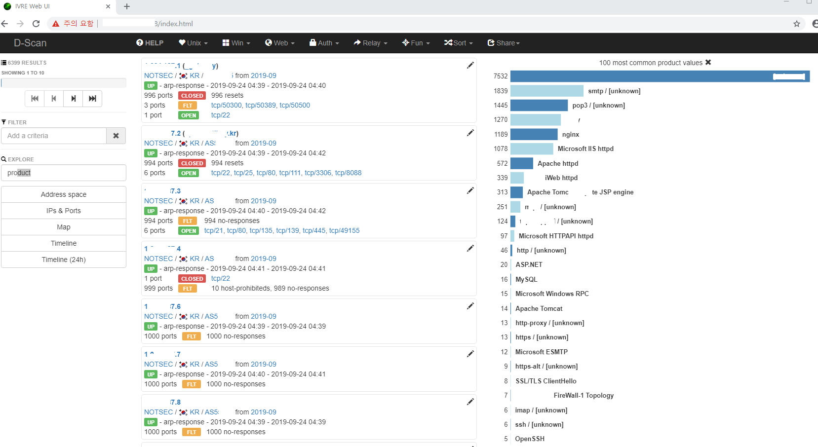 IVRE 네트워크 스캔 프레임워크를 활용하면 보안 취약점에 대한 사전 예방 및 점검이 가능하며 shodan이나 censys와 비교해도 손색이 없을 많큼 개인적으로는 훌륭한 솔루션이라고 생각한다.