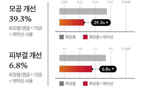 ATS 에어샷 사용 후 기초 화장품을 흡수시키면 일반적으로 손으로 발라서 흡수시킬 때보다 432%나 빨리 피부 흡수도에 도움이 됩니다.