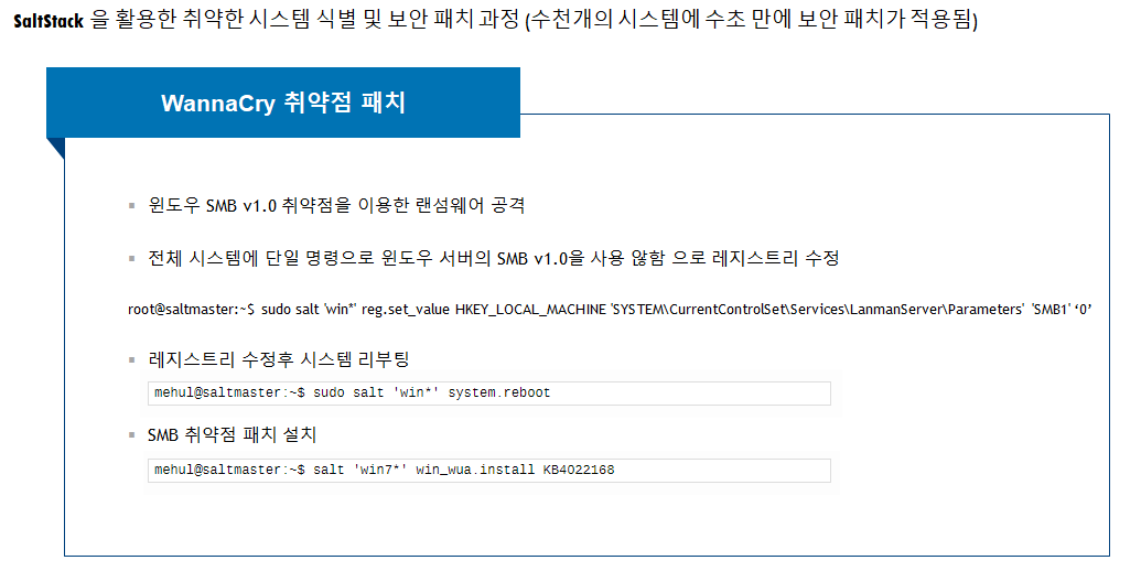 saltstack 사용 wannacry (SMB 취약점) 취약점 패치