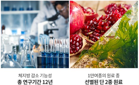 푸응 나이트버닝 핵심 원료는 우리가 잘 알고 있는 미역의 주 성분인 푸코산틴과 석류씨 오일의 핵심 성분인 푸닛산을 배합한 복합 추출물인데요 이 성분들은 우리 몸의 체지방 감소에 도움을 주는 잔티젠 다량 함유하고 있습니다. 그리고, 잔티젠은 미국 특허청에 특허 원료로 등재되어 있습니다. 잔티젠을 배합하여 신체 내 기초대사량을 증가시키고 체지방을 감소시키는 효과는 다양한 실험을 통해 공식 증명되었습니다.