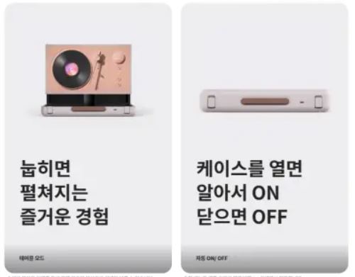 스탠바이미 고 디자인은 케이스 타입이라 열면 자동으로 켜지고 닫으면 자동을 꺼지는 기능이 내장되어 있으며, 텐테이블이라는 음악(뮤직) 스킨 적용 시 블루투스 스피커처럼 활용 할 수 있습니다.
