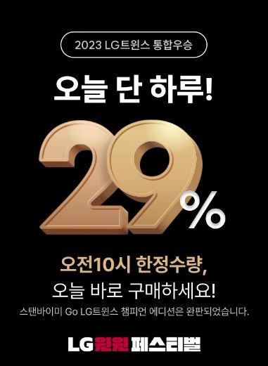 전자 제품 포함 생활 용품 할 것 없이 LG U플러스 등 통신사까지 포함된다고 합니다. KBO 한국 시리즈 우승 직후 수많은 인터넷 온라인 커뮤니티에서는 29년 만에 우승했으니 29% 할인하겠네 등의 여론들이 들끓기 시작했는데요 팬들의 희망사항이나 요구를 적극적으로 받아들이기로 결정하였습니다. lg 트윈스가 29년 한을 풀어 그룹 전체 계열사들이 lg 우승 세일 릴레이를 시작하였습니다.