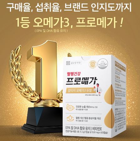 인기배우 조인성을 모델로 적극적으로 다양한 언론 매체를 통해 광고 중인 제품으로 우리나라 유명 제약회사 종근당에서 출시한 건강기능식품 프로메가 알티지 오메가3는 우리가 잘 알고 있는 미국 NASA 연구로 부터 발견된 미세조류 추출 기술을 적용한 원료를 사용한 식물성 알티지 오메가3(EPA 및 DHA 함유유지)를 600mg 함유하고있는 혈행이나 혈중중성지질과 건조한 눈을 개선하는데 도움을 주는 건강기능식품입니다.