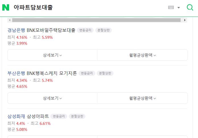 제가 확인한 시점에는 경남은행 비대면 모바일 아파트담보대출 상품이 평균 금리가 3.99%로 가장 저렴한 것으로 확인되는데요 매월 공시를 통해 이자율은 변동될 수 있음을 참고하시고 진행하시기 바랍니다.