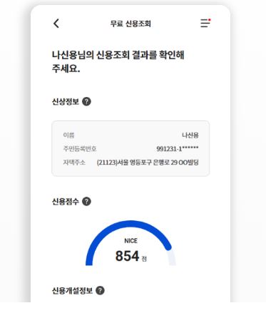 2.1 대표 신용평가사 무료조회 이용