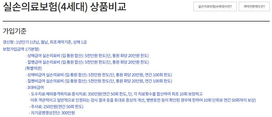 - 특약 가입 제한 : 4세대 실손보험은 일부 특약의 가입을 제한하였습니다. 예를 들어, 본인부담금 특약, 비급여 특약, 치료비 연장 특약 등입니다.
