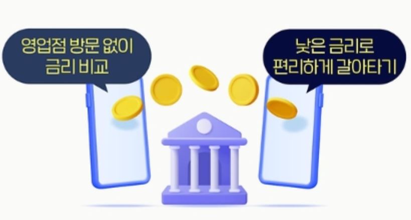 위와 비슷한 맥락에서 같은 맥락에서 비슷한 의미로, 대환대출 이란? 현재 가지고 있는 고금리를 저금리로 바꿔 신규 대출을 진행하는 것을 의미합니다. 만약, 갈아타기 성공 시 가장 큰 장점은 저금리로 갈아타게 되면 매월 나가는 이자부담을 줄일 수 있으며, 개인별 상환 능력에 따라 상환 기간을 좀 더 길게 설정하여 매월 납입금을 줄일 수도 있는 것입니다.