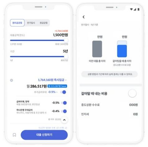 평소에 주로 거래하시는 은행이나 모바일 뱅킹 앱에서 대출 한도가 얼마나 나오는지 미리 확인해 보시는 게 좋습니다. 전세대출 갈아타기 대환 플랫폼은 시중 대표 5대 은행뿐만 아니라 인터넷 은행, 대출 비교 플랫폼 서비스 업체 등 다양한 곳에서 신청이 가능하기 때문에 최소 2~3군데는 꼭 조회해 보시고 가장 유리한 상품으로 갈아타시기 바랍니다.