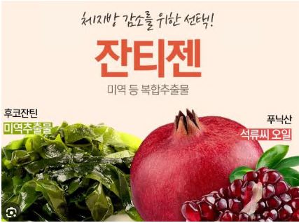 - 잔티젠이란 석류나 미역에서 추출되는 성분입니다. 이 추출물은 두 가지 주성분인 푸닛산과 후코잔틴으로 이루어져 있는데, 그중 후코잔틴은 갈색지방의 활성을 증가시켜 우리 몸의 기초대사량을 높여주는 역할을 하며, 푸닛산은 지방합성 및 분해를 촉진시키는 역할을 하는 것으로 알려져 있습니다.