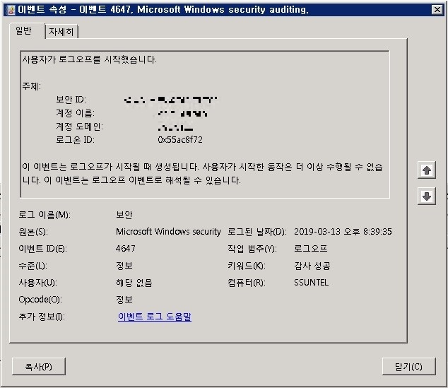 administrator 계정으로 로그인 후 악의적 행위 이후 로그오프 로그