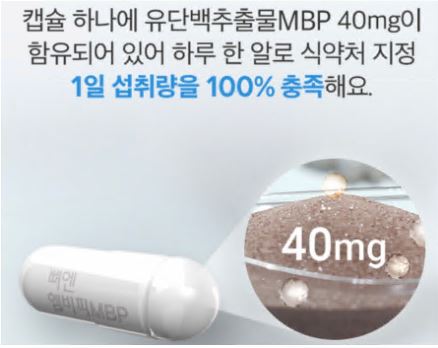 "뼈엔 MBP"에는 우유에서 뽑아낸 단백질인 MBP(Milk Basic Protein)를 간략히 표현한 말입니다. 이것은 우리가 일상적으로 마시는 우유에서 추출한 단백질을 의미하는데, 앞서 말한 바와 같이 우유 내에는 매우 적은 양인 0.005%만 포함되어 있습니다. 뼈엔 엠비피 mbp를 하나만 먹어도 식품의약품안전처가 지정한 하루 섭취량 40mg를 충족시킬 수 있습니다.