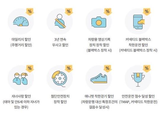만약 발생할 수도 있는 큰 사고에 대해서는 경제적, 법적 책임을 모두 본인 스스로가 감당해야 합니다. 될 수 있으면 저렴한 비용 즉, 몇 푼 아끼자고 안전하지 않은 선택은 피하시고, 보상 범위와 세부 사항을 자세히 확인하셔서 꼭 필요한 부분은 빼먹지 말고 체크하시는 것을 추천드립니다. 또한 다음과 같은 추가 할인 특약들에 해당되신다면 모두 선택하시기 바랍니다.