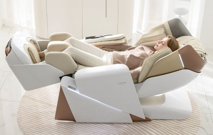 바디프랜드사의 안마의자 에덴 모델의 대표적인 기능들을 알아보겠습니다. 기존 안마기기 시장은 크게 누워서 받는 방식과 앉아서 받는 방식으로 나뉘었지만, 바디프랜드 안마의자 에덴 제품은 리클라이너 의자 형태로 제작되어 눕거나 앉아서 모두 이용 가능하도록 하이브리드 형식으로 개발되었습니다.